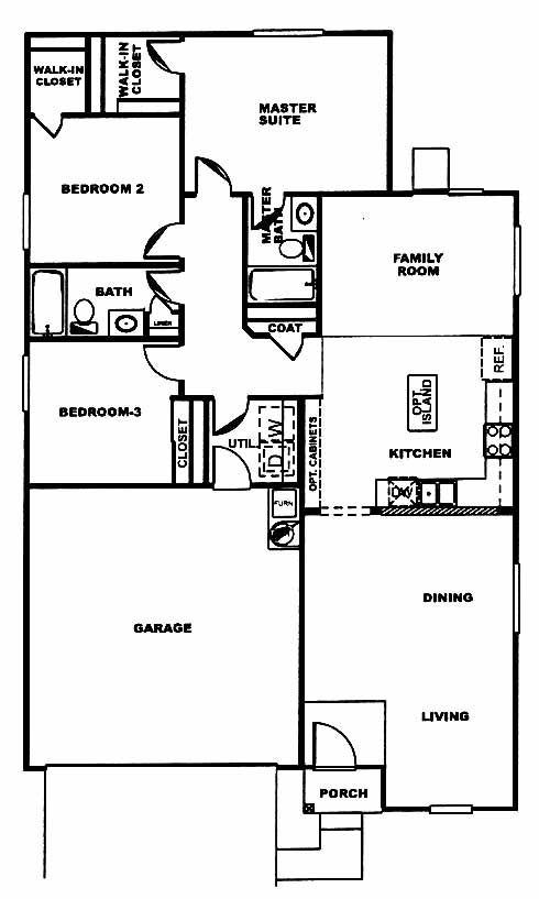 The living and dining room greet you as you enter the home. Next you'll come to the kitchen with optional island which leads to the family room. Down the hall you'll find the 2nd and 3rd bedrooms and the beautiful master suite and bath with a walk-in closet.