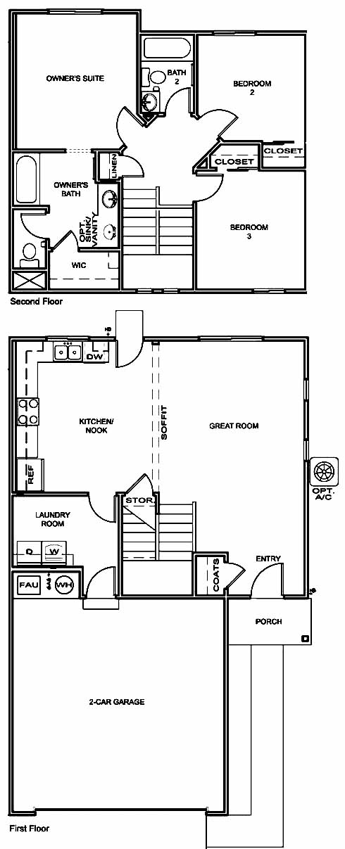 The first floor features a massive great room which leads to the kitchen with nook. Upstairs you have 2 spacious bedrooms and the owner's suite and bath with dual vanities.