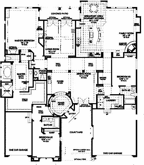A welcoming courtyard leads to the lovely circular foyer. The spacious living room with spectacular outdoor views leads to the expansive covered patio. Gourmet kitchen has an inviting breakfast area and it opens to the family room. The master suite has a walk-in closet and dual vanities.
