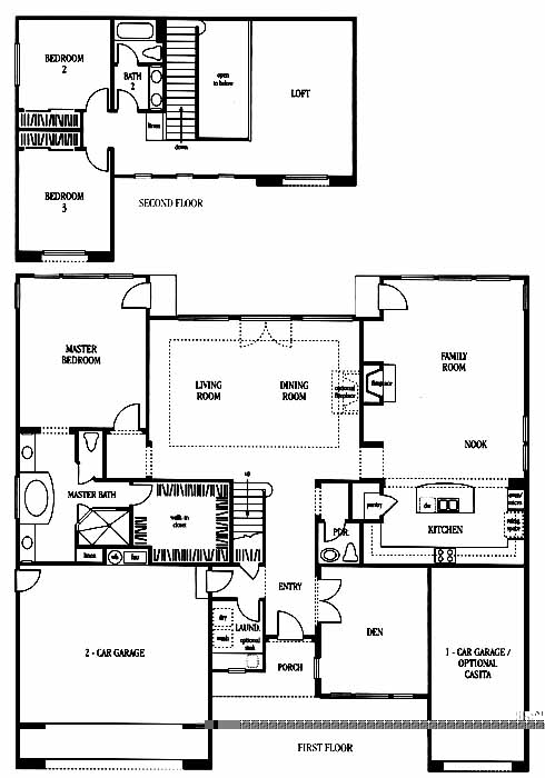 The entry takes you past the den just before you come to the large living and dining room. From here you can access the master bedroom and bath and the family room which leads to the kitchen with nook. Upstairs you'll find the 2nd and 3rd bedrooms with loft area.