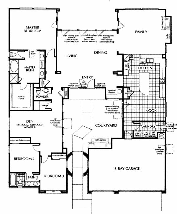 Turret entrance into spacious courtyard with optional outdoor fireplace for evening relaxation. Dramatic entry to huge great room and huge kitchen. Perfectly designed for entertaining. Exceptional standard features and extensive options list.