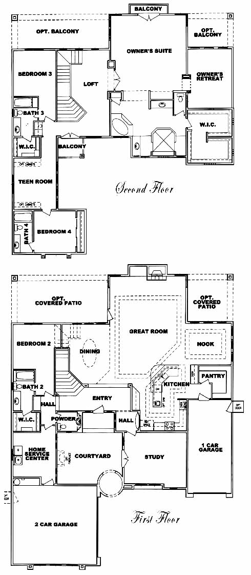 This stunning home features a huge courtyard which leads up to the home. On the 1st floor you have a gorgeous kitchen with nook and pantry, massive great room and dining room. Down the hall you have the 2nd bedroom and home service center. The second floor has 2 more bedrooms, teen room , loft area and elegant owner's suite with retreat, balcony and owner's bath with a walk-in closet.