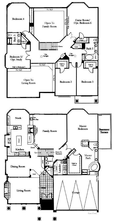 The entry takes you past the living room and dining room just before you come to the kitchen with island and nook. Next you'll come to the family room which access the master bedroom and bath with a walk-in closet. Upstairs you'll find 4 spacious bedrooms, game room and 2 full bathrooms.
