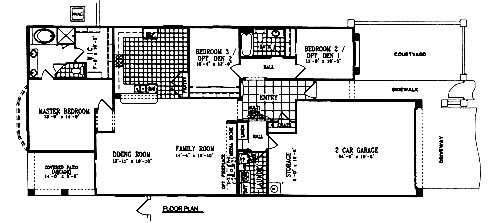 This spacious floor plan features a courtyard, 2 large bedrooms and a huge living and dining room area. From here you can access the tiled kitchen with pantry and master bedroom and bath with dual vanities.