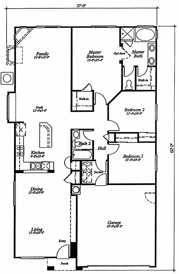 This single story floor plan has all of the extras including a front porch, island kitchen with a nook, and a spacious family room with optional fireplace. The master bath has cultured marble countertops and his and hers dual sinks. The combined living and dining area give the feeling of openness.