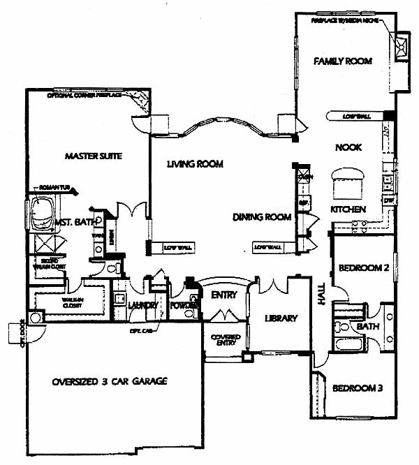 This one story home has it all including a roman tub in the master suite. A perfectly located laundry room. A private library. The family room has a fireplace and a media niche. Elegant foyer with ceramic tile flooring. Breakfast island bar in the kitchen and recessed lighting.