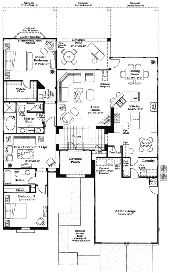 This exquisite single story executive home with sunrise room and double front doors, offers discriminating home buyers luxury living with elegant appointments and custom finishes throughout. Many customizing opportunities include, bedroom three, bay windows, sky lights, nook, den, home office, library, additional fireplaces, spa tub, covered patio, wet bar, and many other upgrades. On site architects and professional interior decorators are available to assist you in designing your home, and customizing your home to suit your individual tastes.