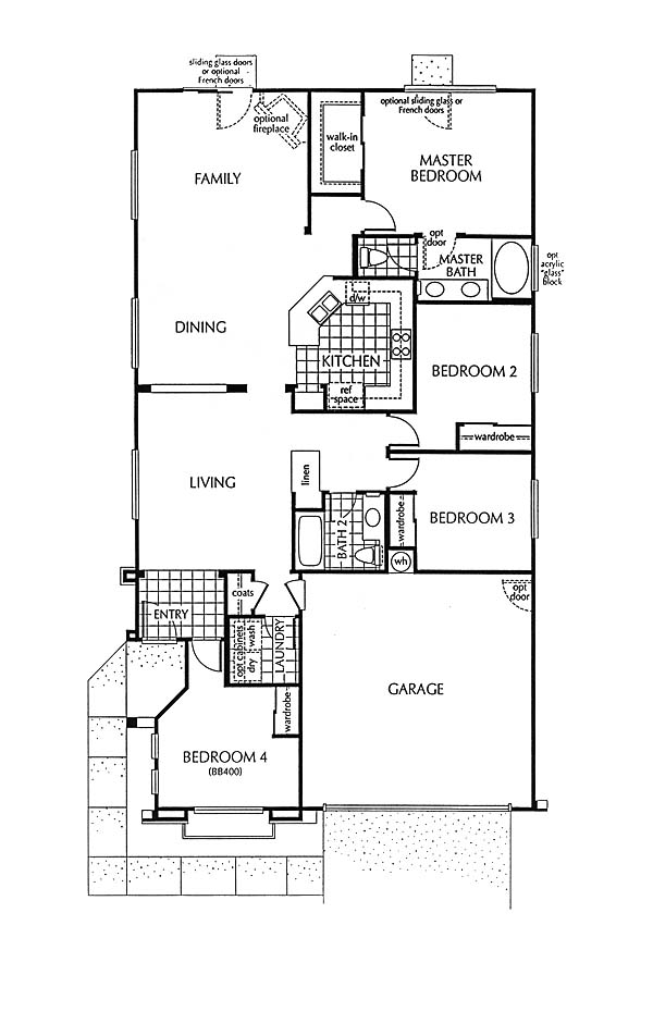 This community consists of one and two story homes and is conveniently located close to schools and shopping. This single story home features a side entry that opens to a nice size living room. The master suite has dual sinks and an oval tub. Options available.