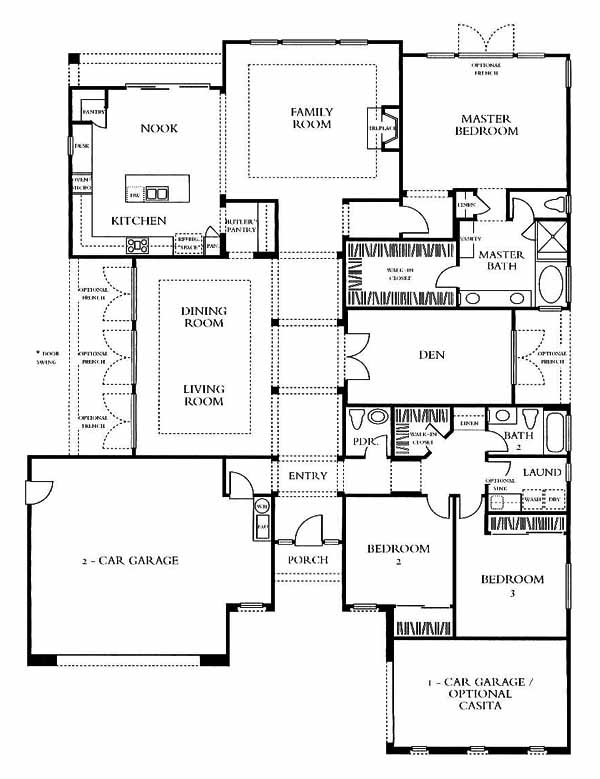 Single story with optional casita and bathroom. The formal living room and dining room give this new home an open feeling. The kitchen has a large center island and breakfast nook that opens to the family room with a fireplace. The master bedroom with exterior access is a wonderful place to enjoy the outdoors. The master bath features a garden tub, separate shower and vanities and an oversized walk-in closet.