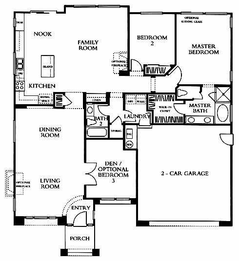 The large living and dining room greets you as you enter the home. Next you'll come to the family room with optional fireplace. This home also features a beautiful kitchen with island and nook. 2 bedrooms and the master bedroom and bath with dual vanities.