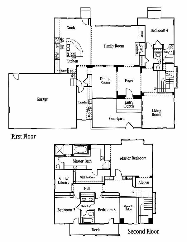 Lot premiums and extensive upgrades are included in the price. Two story with a courtyard and entry porch that opens to a large foyer. The kitchen features an extra large center island that opens to the breakfast nook and family room with a fireplace and media nook. The master bedroom includes an oversized walk-in closet and alcove. The master bath features a garden tub, separate shower and vanities.