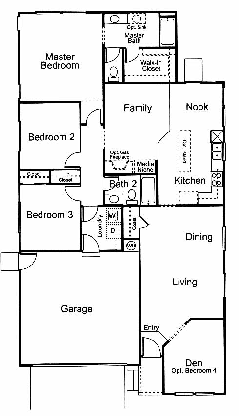 The entry takes you past the den and into the living and dining room area. Next you'll come to the kitchen with nook. From here you can access the family room, 2nd and 3rd bedrooms and the master bedroom and bath with a walk-in closet.