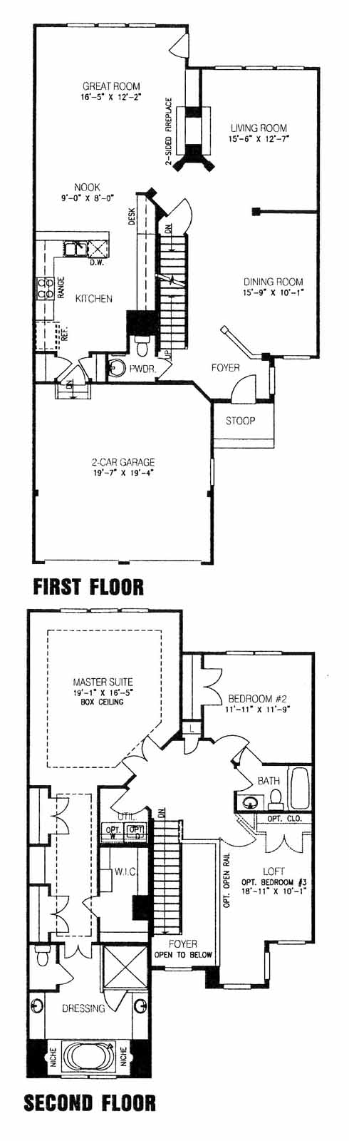 The foyer takes you directly into the the large dining room area. From here you can access the living room and the spacious great room with 2-sided fireplace. Open to the great room is the kitchen with wrap around counter and breakfast nook. Upstairs you'll find the 2nd bedroom, hall bath with dual vanities, loft area and the impressive master suite and bath with his and her walk-in closets.