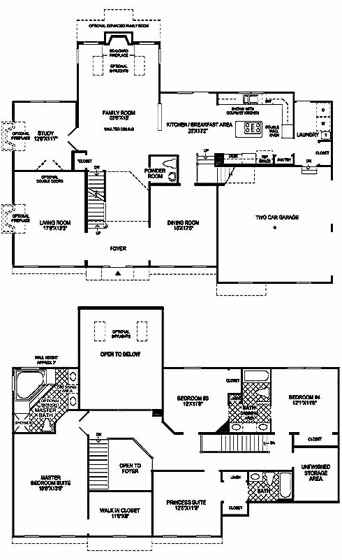 The foyer flanked by the living and dining room takes you past the study and into the family room with standard fireplace. From here you can access the gourmet kitchen with breakfast area. Upstairs you'll find the princess suite with bath, 3rd and 4th bedrooms with Jack and Jill bath and the master suite and bath with dual vanities.