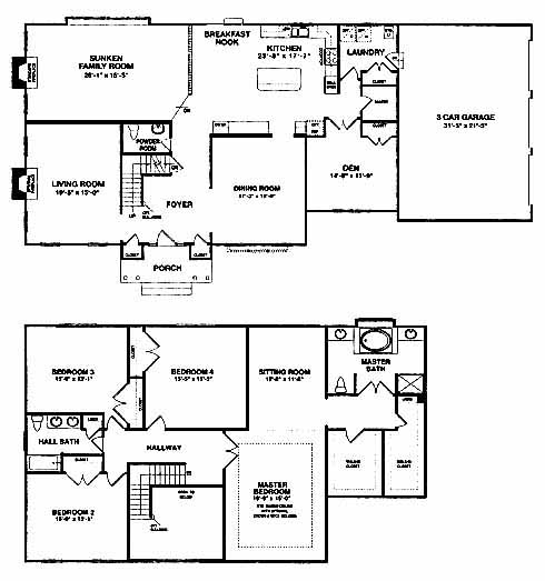 The foyer flanked by the lovely living and dining room takes you directly into the kitchen with island and breakfast nook. From here you can access the den, laundry room and the gorgeous sunken family room with standard fireplace. Upstairs you have the 2nd and 3rd bedrooms, hall bath, 4th bedroom with bath and the massive master bedroom with sitting room, his and her walk-in closets and master bath with dual vanities.