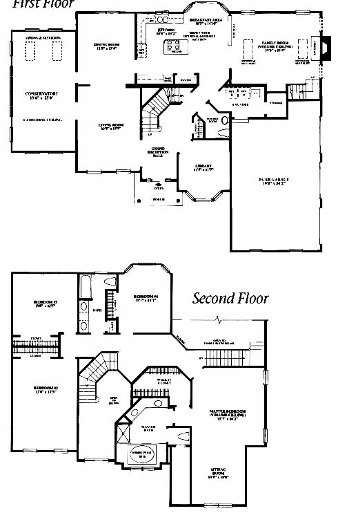 The grand reception hall flanked by the living room and library takes you into the kitchen with island and breakfast area. From here you can access the dining room and the massive family room with fireplace and optional skylights. Upstairs you'll find 3 spacious bedrooms, hall bath and the impressive master bedroom with sitting room and master bath with walk-in closet.