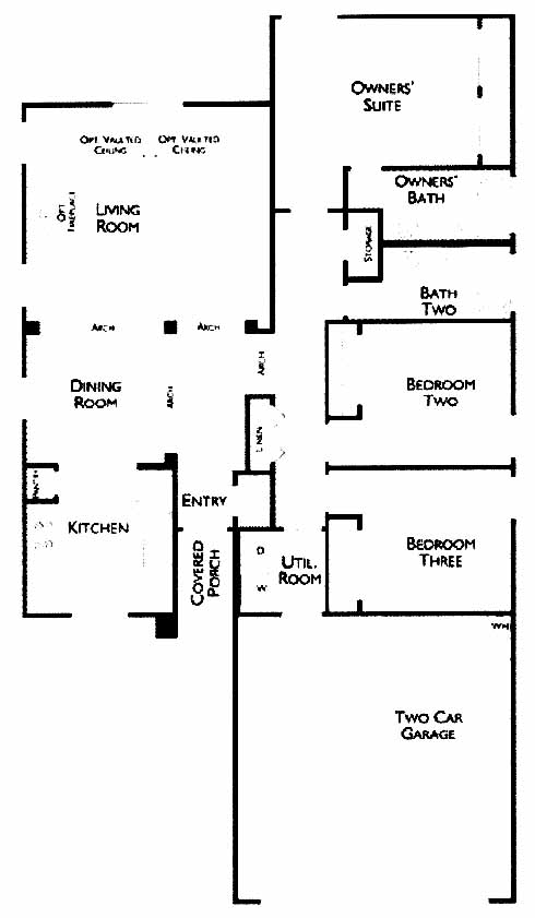 A cute single story home with a lot of charm. A covered porch and separate entryway makes this home inviting. Front view kitchen opens to a dining room surrounded with archways. The Living Room can option for a vaulted ceiling and fireplace. An optional covered patio off the Great Room makes for plenty of summertime shade. The Owner's suite can option a bay window. It has a connecting full bath. The 2nd and 3rd bedrooms are also a nice size. All have wall to wall closets.