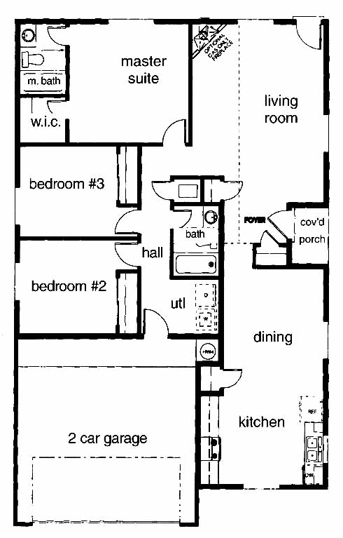 Large living room with optional corner fireplace. Kitchen with adjoining dining room. Master suite with walk-in closet.