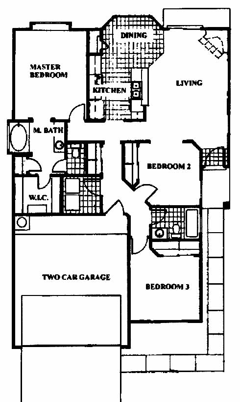 Single story home. Large living room with an optional corner fireplace. Kitchen with adjoining dining room. Master bedroom with large walk-in closet.