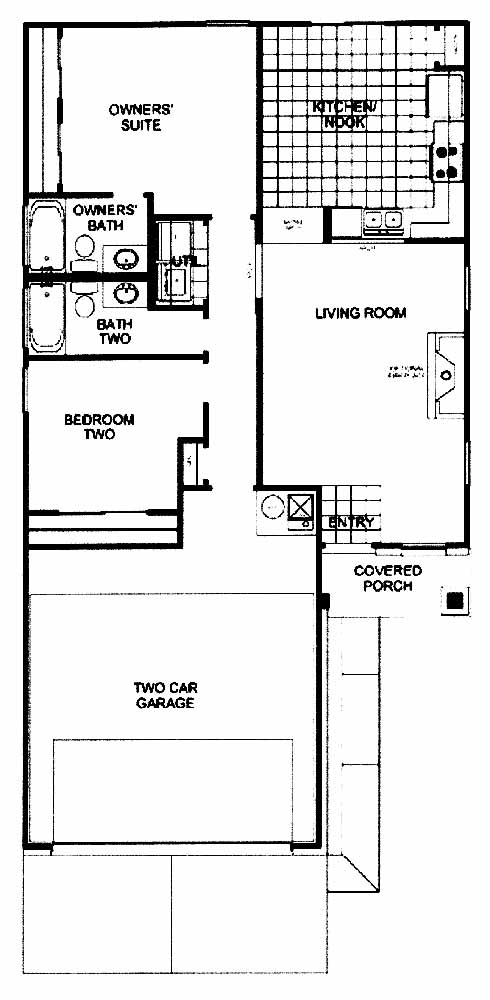 A single story stucco home with a covered porch invites you into this home. Living Room has optional fireplace that connects to a country kitchen with a pass through arch. The large country kitchen boasts openness and charm. Owner's suite has a connecting full bath and wall to wall closet. This home is truly a great value for the first time buyer or empty nester.