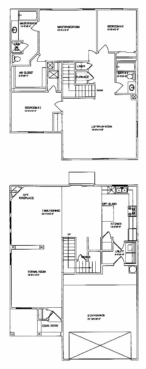 Three bedrooms, fourth and fifth bedroom option, upstairs playroom, two full baths, family and formal rooms, country kitchen, two car garage.
