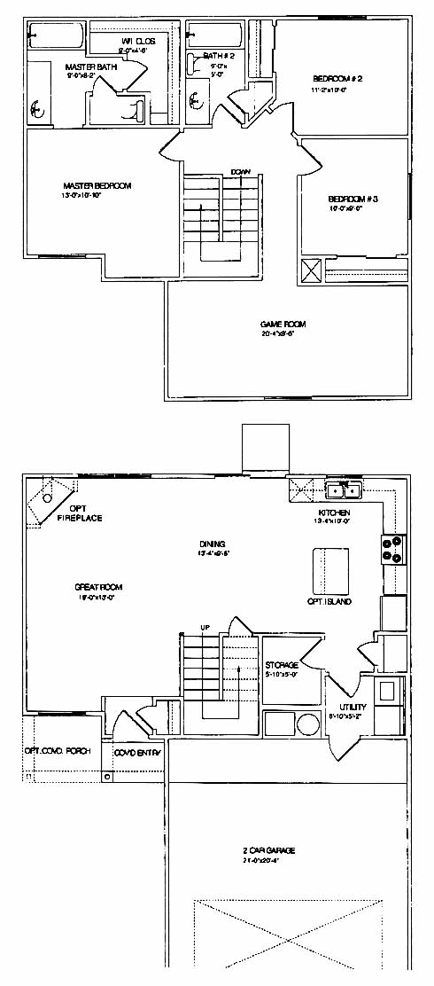 Three bedrooms, fourth bedroom option, game room, two full baths, great room, country kitchen, two car garage.