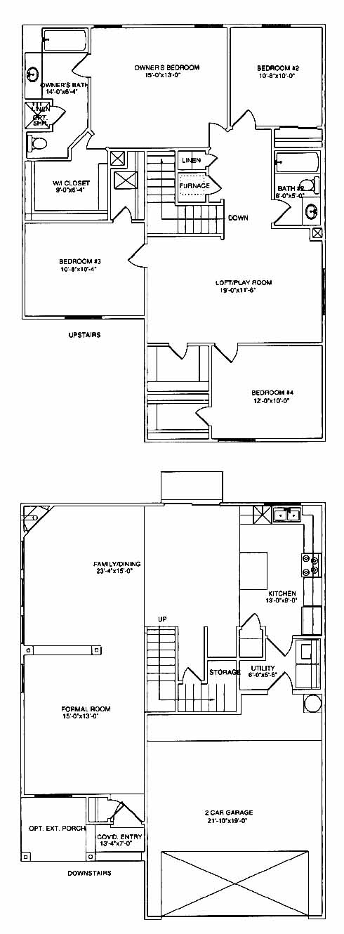 Four bedrooms with a fifth bedroom option. Upstairs playroom. Two full baths. Family and formal rooms. Country kitchen. Two-car garage.