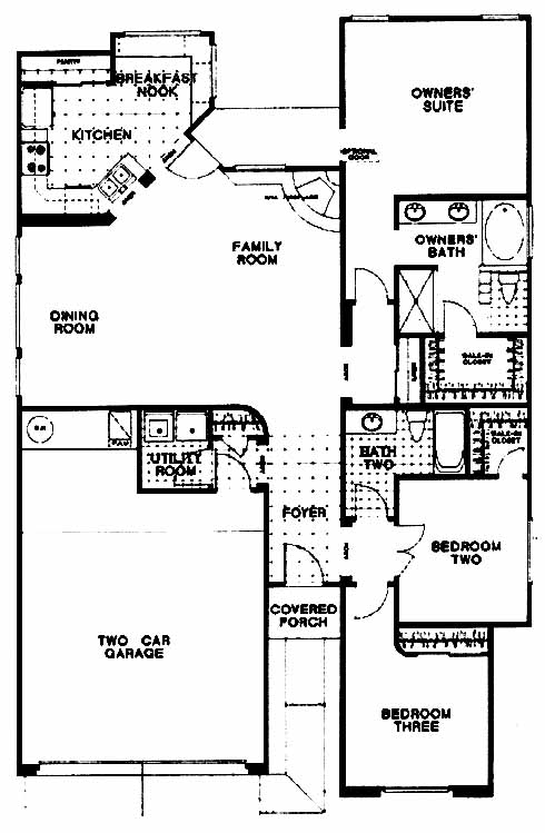 Kitchen with breakfast nook. Family room with fireplace. Owner's suite with large bath and walk-in closet. Bedrooms two and three are located at the front of the home, and share the second bathroom of this home.