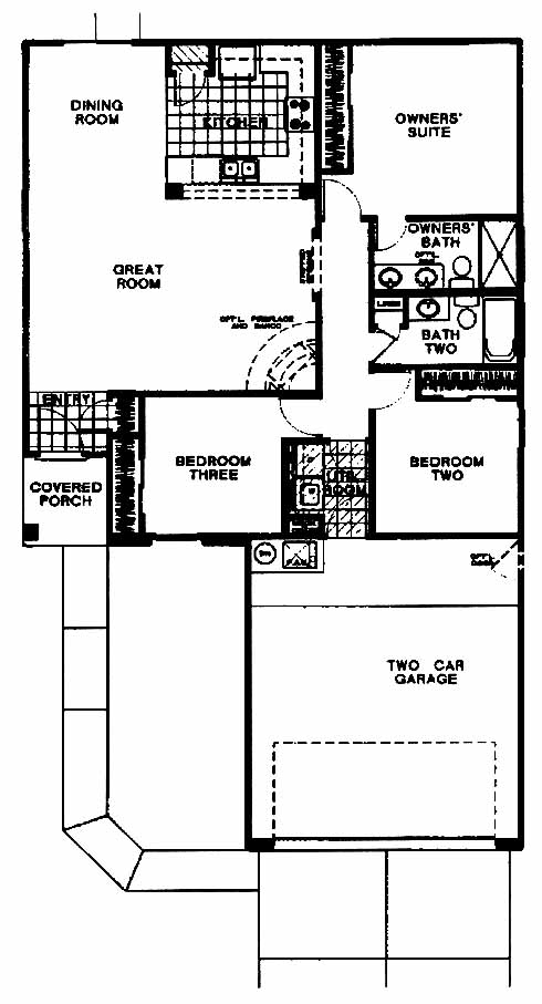 Wonderfully zero-scaped home with a covered front porch welcomes you into the great room. Kitchen with adjoining dining room.