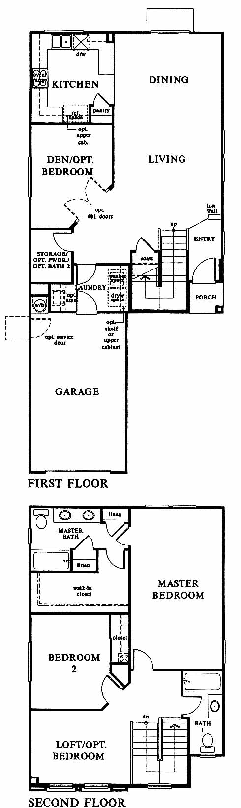 Two bedrooms, living room, dining room, retreat in the master suite, den/optional third bedroom, loft, and two bathrooms.