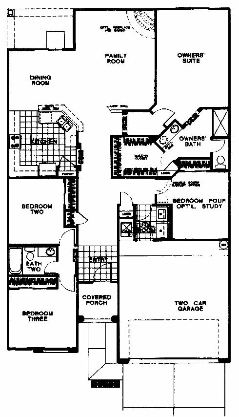 Large single story home. Kitchen with adjoining dining room. Family room with an optional fireplace. Massive owner's suite with a large walk-in closet. Bedroom four can be an optional study.