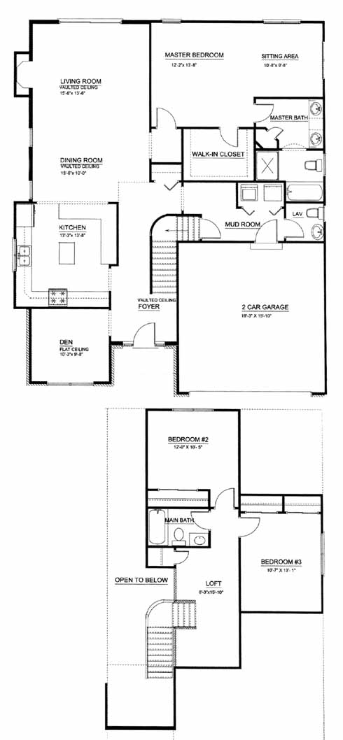 The foyer takes you past the den, kitchen with island and into the large living and dining room with fireplace. From here you can access the powder room, master bedroom with sitting area, walk-in closet and master bath with dual vanities. Upstairs you'll find the 2nd and 3rd bedrooms, hall bath and large loft area.