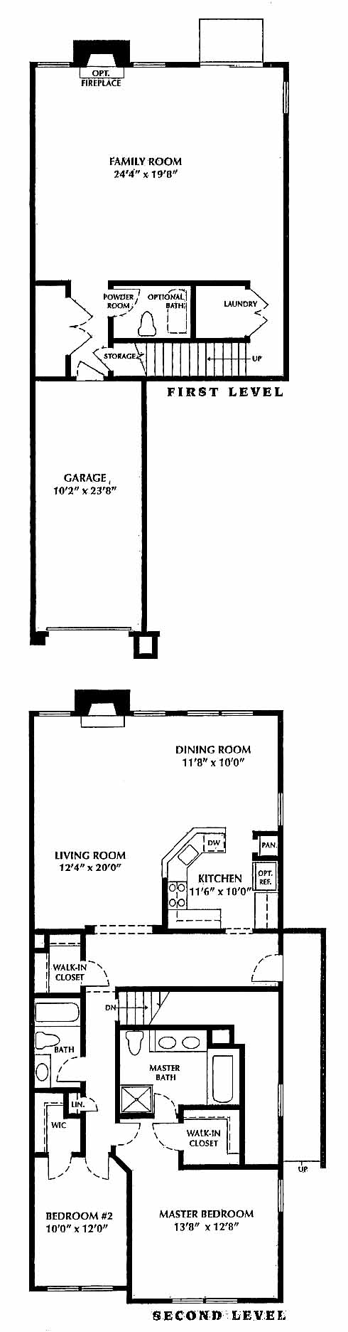 The first level features a large family room with optional fireplace and optional bath. Upstairs you'll find the large living and dining room, kitchen with pantry, 2nd bedroom with bath and the master bedroom and bath with dual vanities.