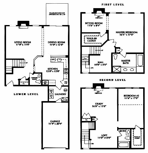 This home features a large living and dining room area, powder room and kitchen with pantry. On the first floor you'll find the master bedroom with sitting room, optional fireplace and master bath with dual vanities. The second level has the 2nd bedroom, hall bath, loft area and study with optional fireplace.