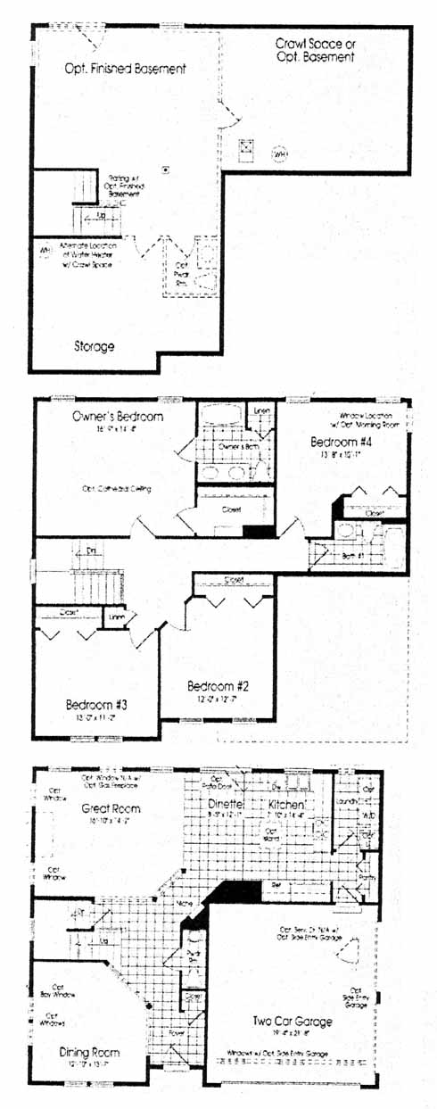 The tiled foyer takes you past the dining room and into the great room with optional fireplace. Open to the great room is the tiled kitchen with pantry and dinette. Upstairs you'll find the 2nd, 3rd and 4th bedrooms, hall bath and the owner's bedroom and bath with dual vanities. This home also features an optional finished basement.