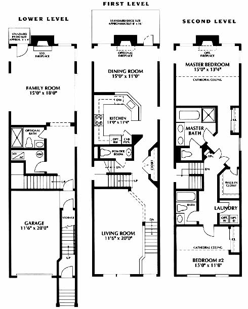 The lower level features a family room with standard fireplace and an optional bath. On the first level you have the dining room, kitchen with pantry, powder room and large living room. Upstairs you'll find the 2nd bedroom, hall bath and the master bedroom with optional fireplace and master bath with dual vanities.