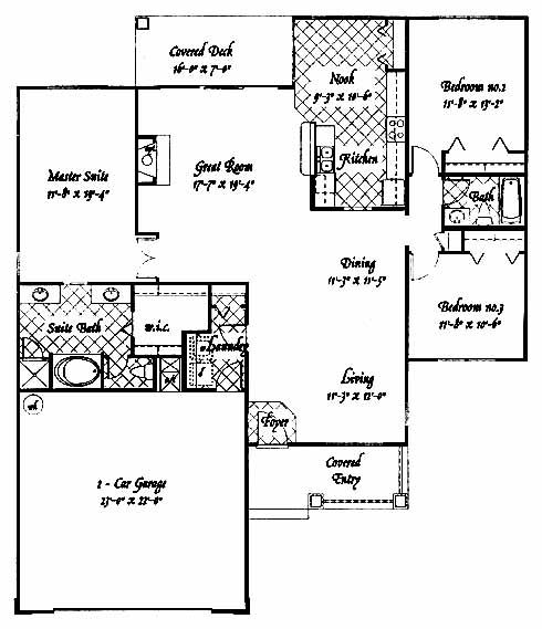 This home has living and dining rooms at the foyer entrance. The kitchen has ample counterspace for preparing meals and opens into the nook with deck access. Entertain guests in the great room by the optional fireplace. The master suite includes a walk-in closet and master bath with dual vanities, soaking tub and separate shower. Two more bedrooms share a bath between them.
