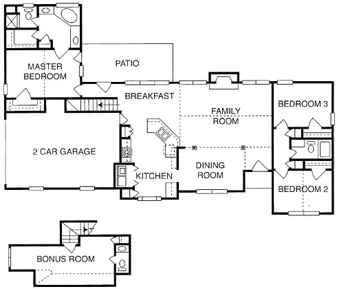 This home has a dining room to one side of the foyer and opens into the family room with fireplace. The large room is a nice spot to entertain guests. The kitchen includes a pantry, access to the washer and dryer and opens into the breakfast area. The master suite includes his and her walk-in closets, a private bath and private access to the patio. The second and third bedrooms are on the other side of the home and they share a bath between them. A second-floor bonus room makes a nice home office.