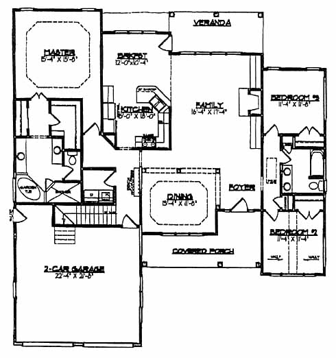 This home has a dining room to one side of the foyer entrance with large windows that look out to the front porch. The family room at the back includes a fireplace and built-in shelving. The kitchen has ample counter space, a bar top and it opens into the breakfast room. The master suite includes a walk-in closet and private bath with garden tub and separate shower. Two bedrooms on the opposite side of the home share a bath with double vanity. The veranda is accessible from the breakfast room. A second-floor playroom is the perfect size for the kids to play comfortably.