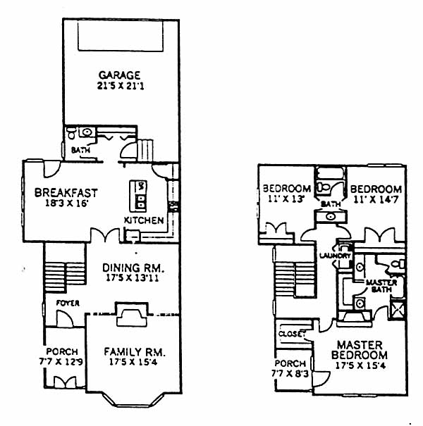 The unusual design of this two-story home fits well into the master plan of the community. The large family room with bow window is situated at the front of the home to take advantage of the streetscape. The kitchen is conveniently located between the formal dining room and breakfast area. Upstairs the plan allows for the master suite to be located in the front of the home with a walk-out porch directly off the bedroom. Also included is a garden tub with a separate shower and dual walk-in closets. The two bedrooms at the back of the home share a full bath.