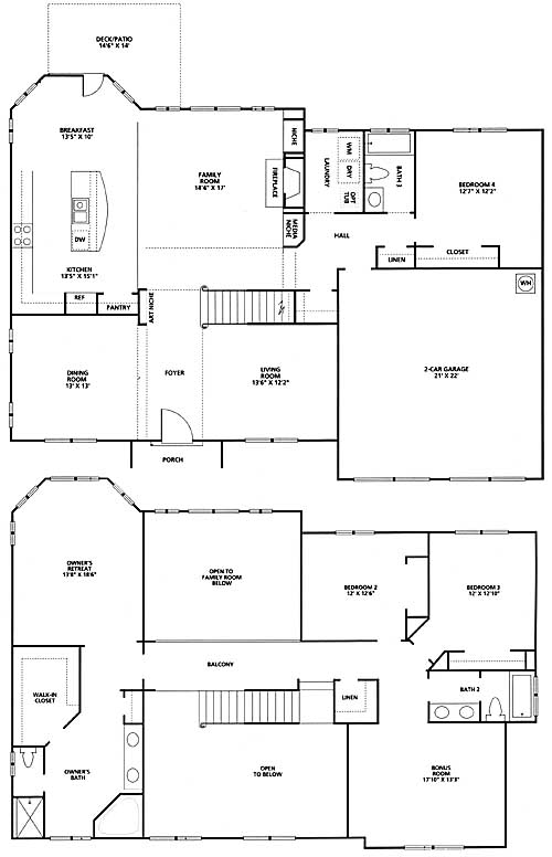 This home is an elegant two-story plan. A spacious family room with a media niche, fireplace and window wall opens to a gourmet kitchen and breakfast area with a bay window. On the main floor there is also a full bedroom and bath, perfect for a mother-in-law or a home office. The owner's retreat has an optional sitting room or can be an optional fifth bedroom or media room.