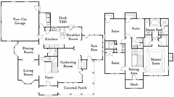 A charming, wrap around porch distinguishes this inviting brick homes facade. Just off the foyer are the openly designed living and dining rooms, these two rooms are accented by decorative columns and bay windows. The spacious gathering room features generous windows looking out onto the covered porch. The walls in the sun den are almost entirely given over to beautiful transom topped windows. Upstairs double doors reveal the master suite, which features a loft tray ceiling, a bath with whirlpool tub and twin closets.