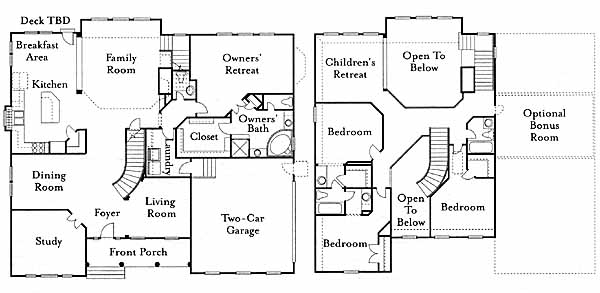 Beyond a covered front porch is a two-story foyer with a graceful, curved staircase. The foyer joins with the openly designed dining and living rooms. The island style kitchen shares an open space with the sunny breakfast area. The generous owners retreat boasts views of scenic surroundings through a wall of windows, as well as a whirlpool tub and walk-in closet. Two bedrooms on the upper level enjoy private dressing areas that connect to a shared bath, while an additional bedroom has its own adjioning bath.