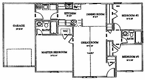 The large great room greets you as you enter the home. From here you can access the kitchen, dining room, 2nd and 3rd bedrooms, hall bath and the impressive master bedroom and bath.
