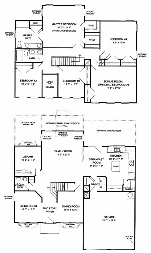 This two-story home has living and dining rooms on either side of the foyer. The family room in the back is a perfect area for entertaining guests. The library makes a nice home office. The kitchen has an island workspace, a walk-in pantry and it opens into the breakfast room. The second floor has all five bedrooms, including his and her walk-in closets and a private bath with double vanity. The fifth bedroom makes a nice bonus room or fitness area.