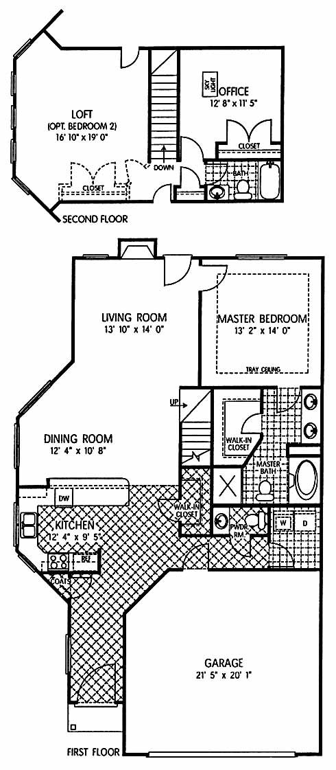 This towhee has a tiled entrance and kitchen that includes ample workspace for preparing meals and a counter top bar that leads to the dining room. The living room at the back has a fireplace. The first-floor master suite has a walk-in closet and private bath with double vanity. The second floor has another bedroom/loft and office area.