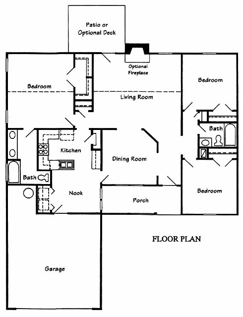 This home has a formal dining room to one side of the foyer. The living room at the back has access to the patio and an optional fireplace is available. The kitchen has a pantry and opens into the nook area. The master suite includes a walk-in closet and private bath with double vanity. Two more bedrooms share a bath between them.