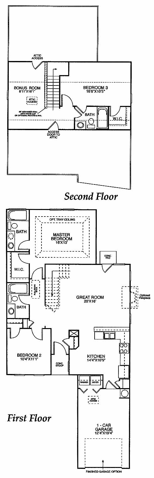 This home has a kitchen to one side of the foyer that includes ample counterspace for preparing meals and a counter top bar. The great room is a nice space for entertaining guests. The master suite has an optional tray ceiling and includes a walk-in closet and private bath. A second bedroom at the front has views of the front yard. An optional second floor is available.
