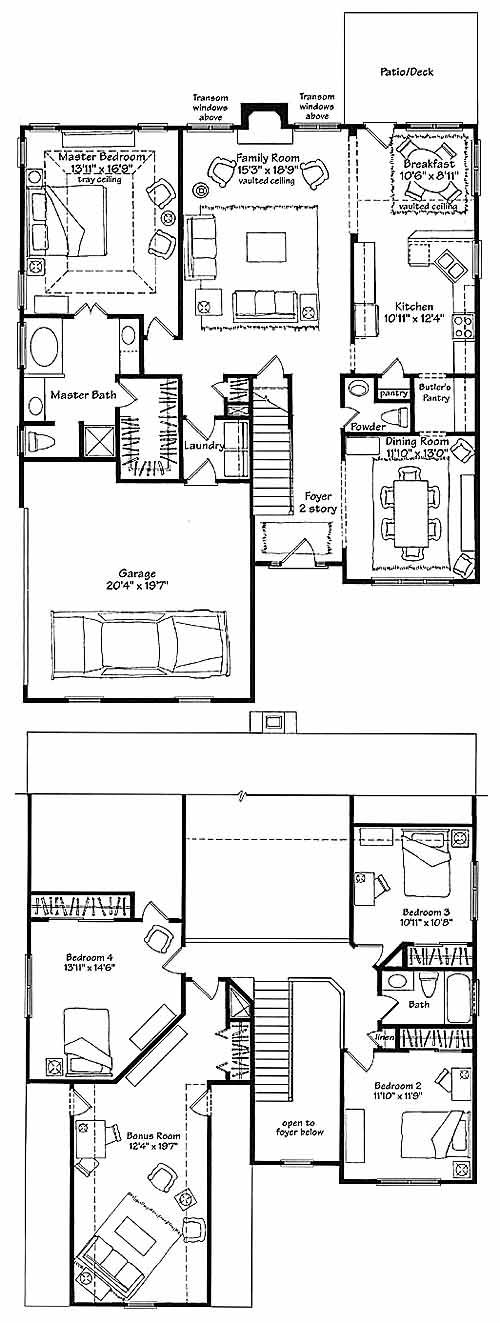 For the best in informal living, the Edmond's design will make you feel right at home. The "sun room's" breakfast area opens to the family room with two handsome columns. Owners will enjoy their privacy in this elegant bedroom showcasing a tray ceiling. Three bedrooms, a hall bath, a bonus room and great storage complete the upstairs layout. Bedroom 4 can easily be used for an in-home office.