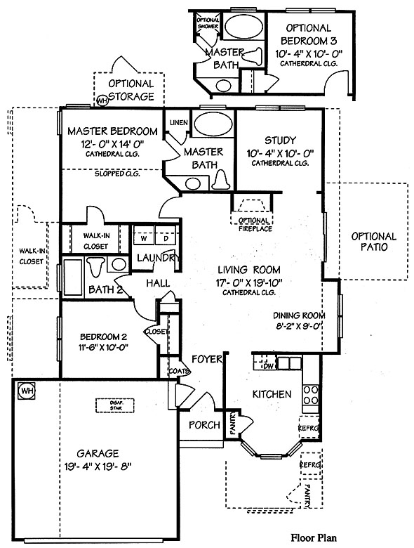 This ranch style home offers an expansive living room with cathedral ceiling, a kitchen with bay window and dining area. The master suite features a bedroom with vaulted ceiling, walk-in closet and master bath with garden tub. The study, located off of the living room, can also be an optional 3rd bedroom.